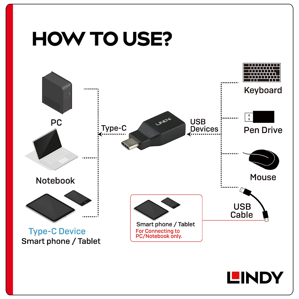 LINDY林帝 TYPE C公 To TYPE A母 轉接頭