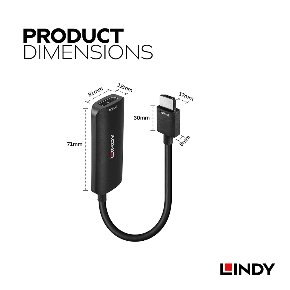 1. 如產品連接後未顯示畫面,請接上外接電源孔(轉接器上的USB Micro-B孔),若使用外接電源依然無法顯示畫面,請洽 LINDY 工程部(02)8698-1141