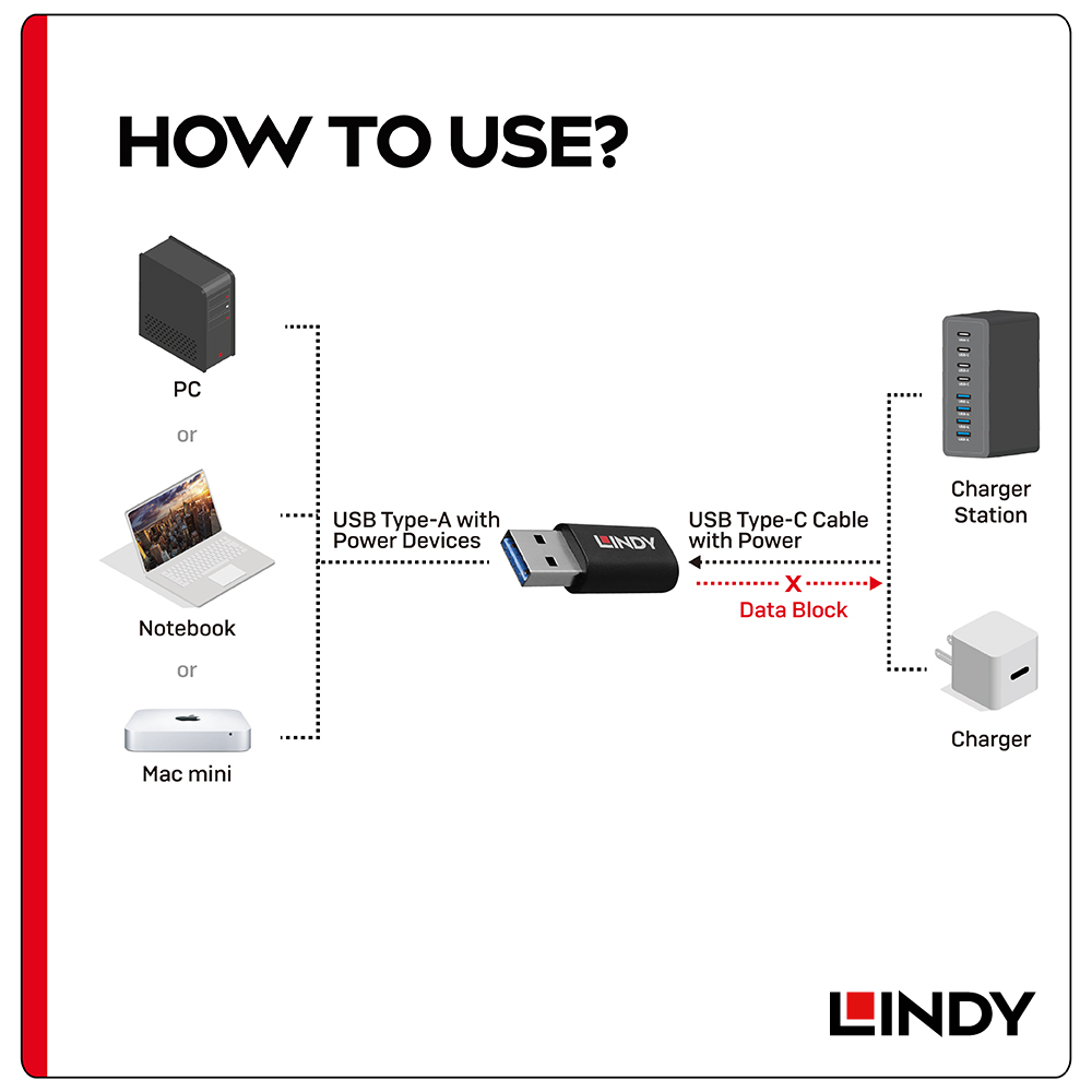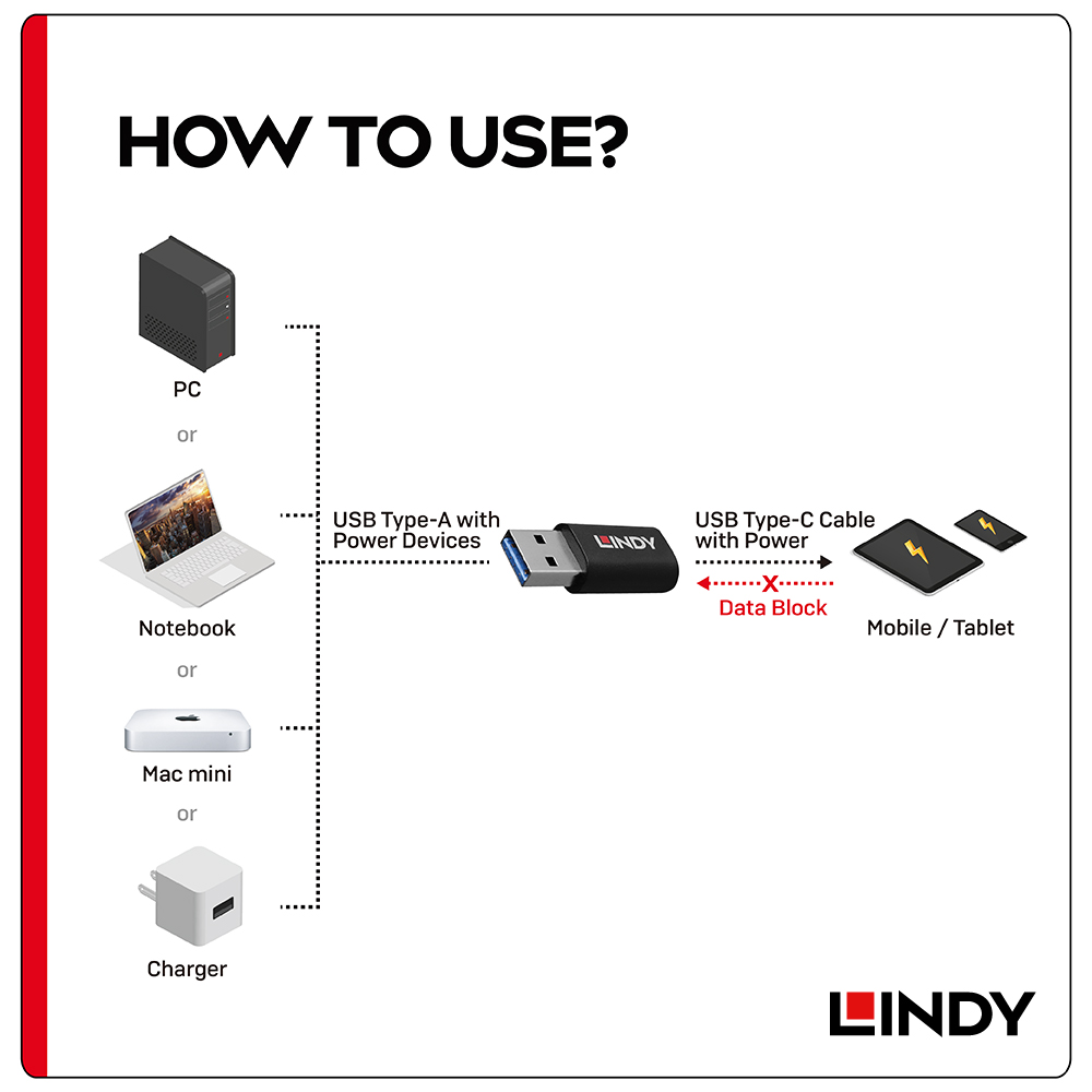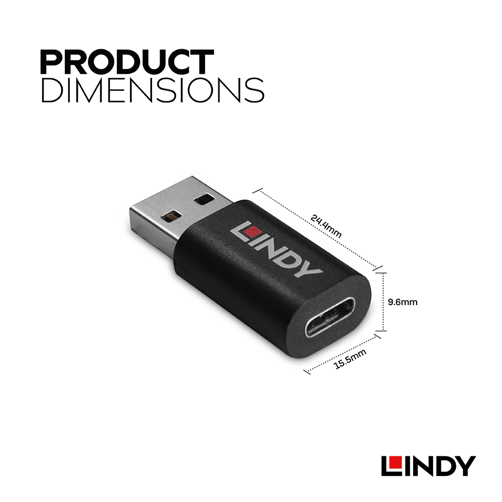 LINDY林帝 USB TYPE-A 公 TO C 母 資訊阻斷器