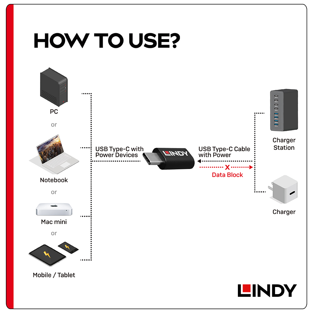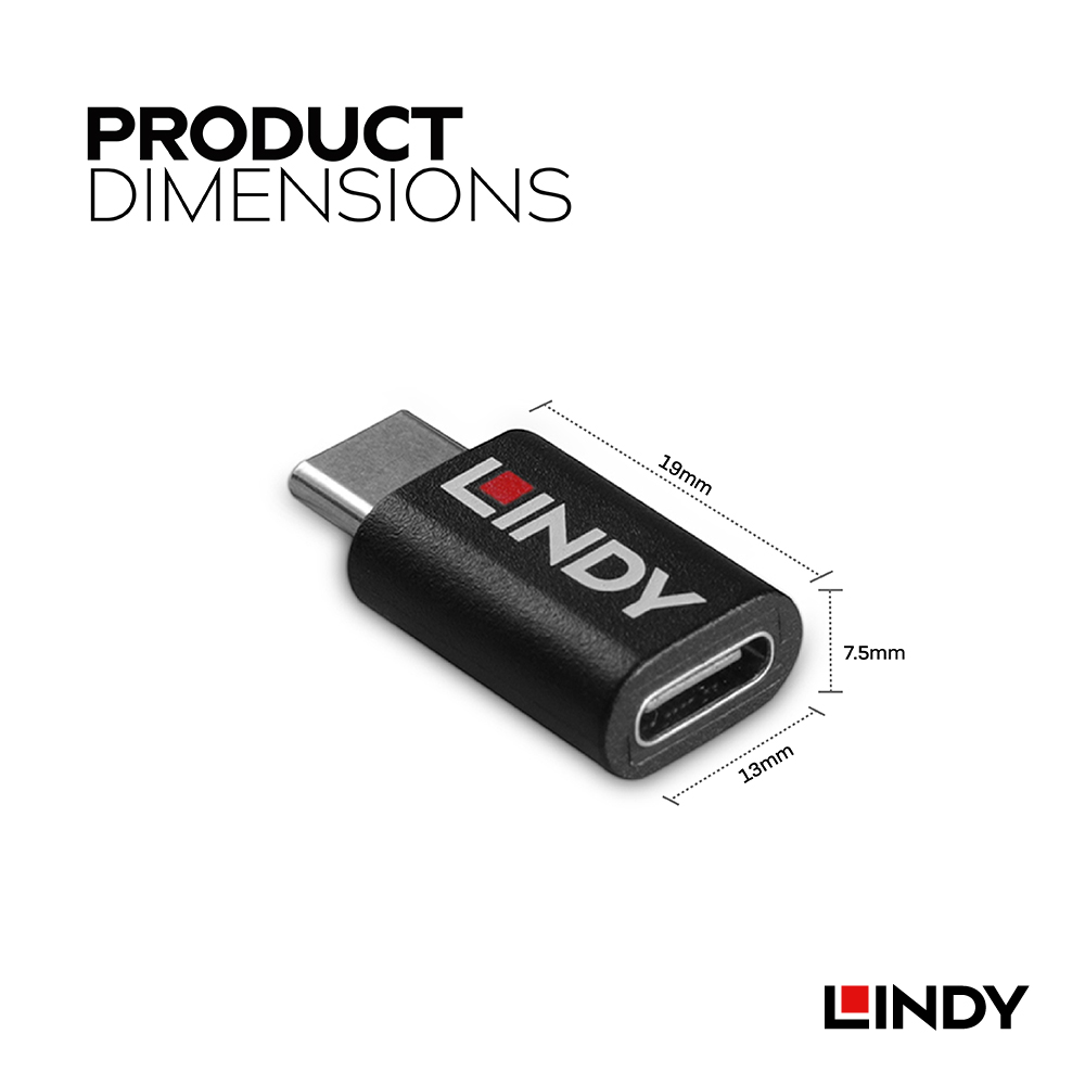 LINDY林帝 USB TYPE-C 公 TO 母 資訊阻斷器