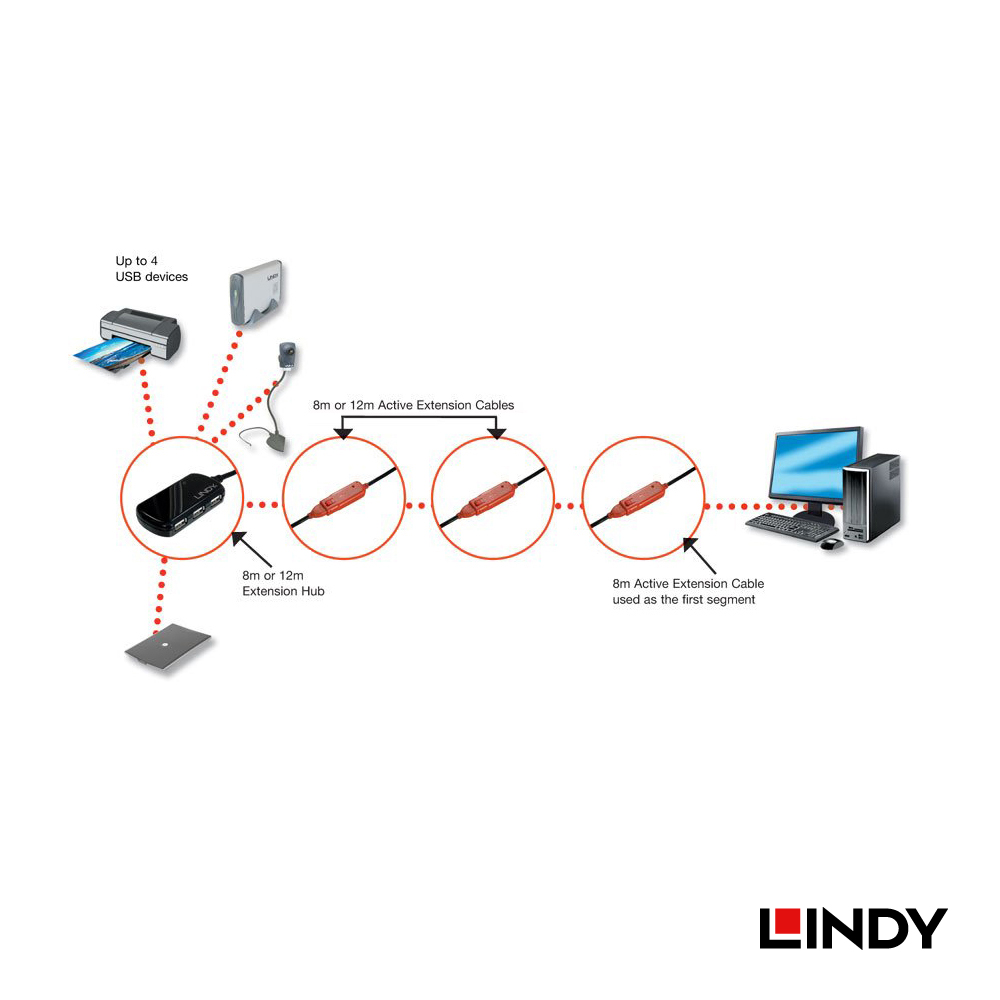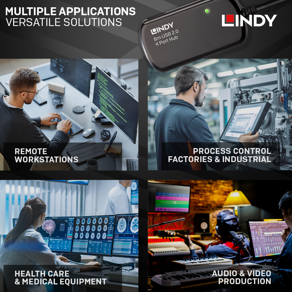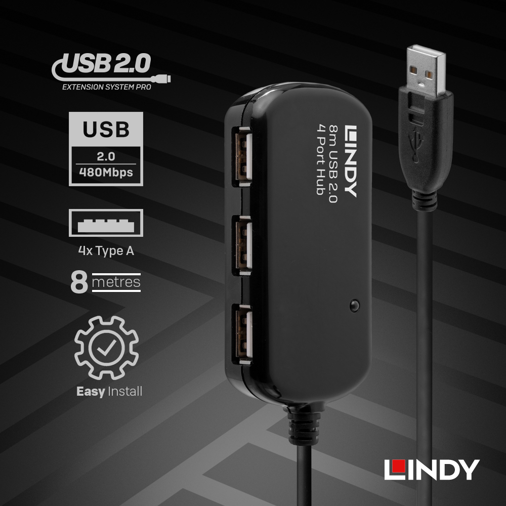 •可搭配LINDY 42780/ 42781/ 42782/ 42783 USB延長系列使用