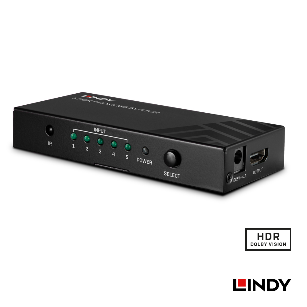 • LINDY林帝 HDMI2.0 4K/60HZ 18G 5進1出切換器