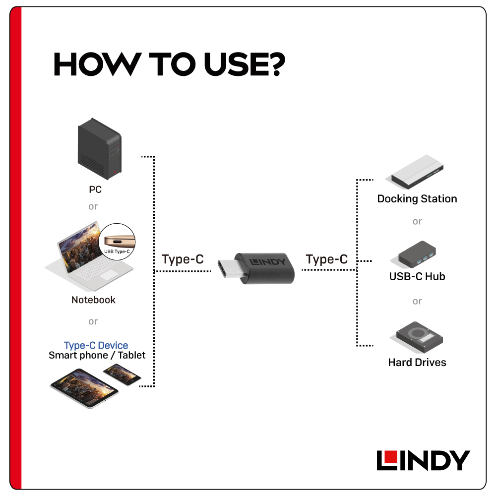 LINDY林帝 USB3.2 GEN2x2 TYPE-C 公對母轉接頭